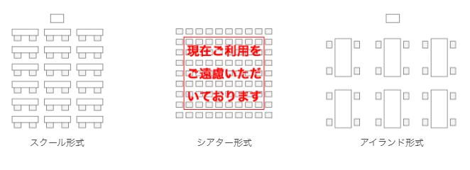 40~54名の研修や会議なら3人掛けでご利用いただけます。