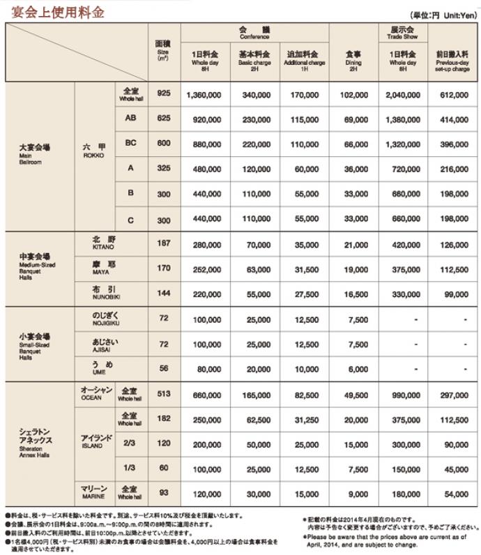 ■上記の会場費と別途、サービス料10%を頂戴いたします。