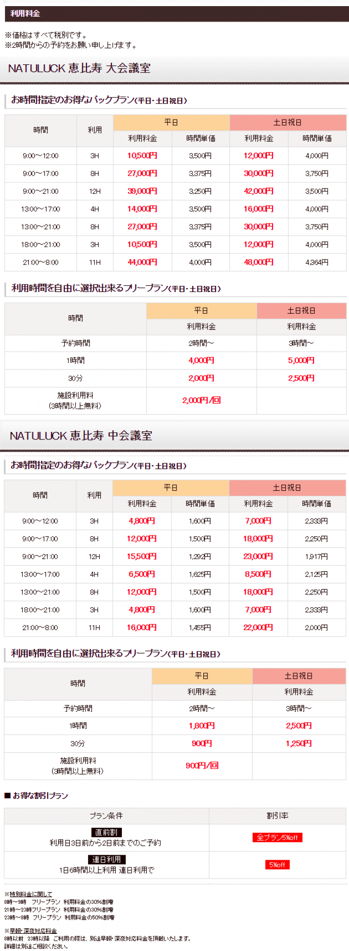 ※平日2時間~、休日3時間~ご利用いただけます。