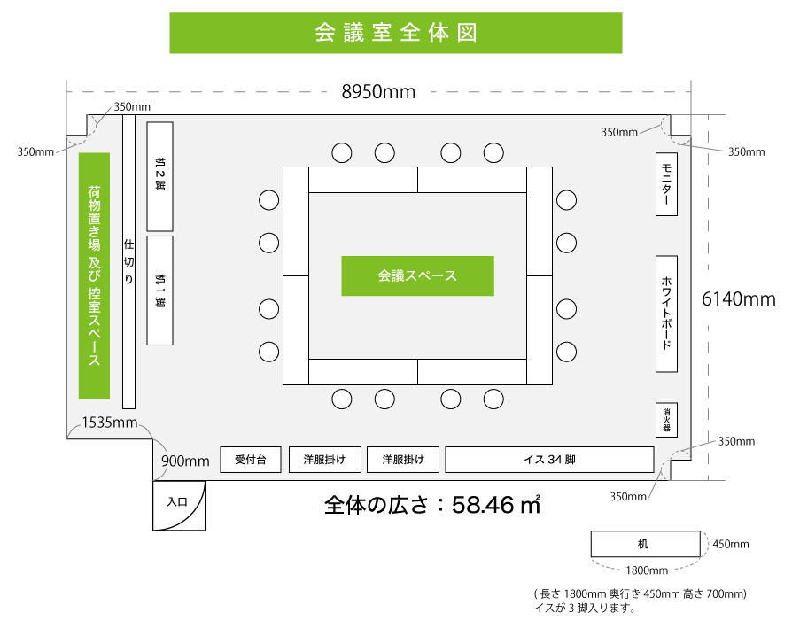 | 58.46㎡ | 30名 | --- | --- | --- | --- | --- | 50名 | --- | --- | 2,800円~ | ||